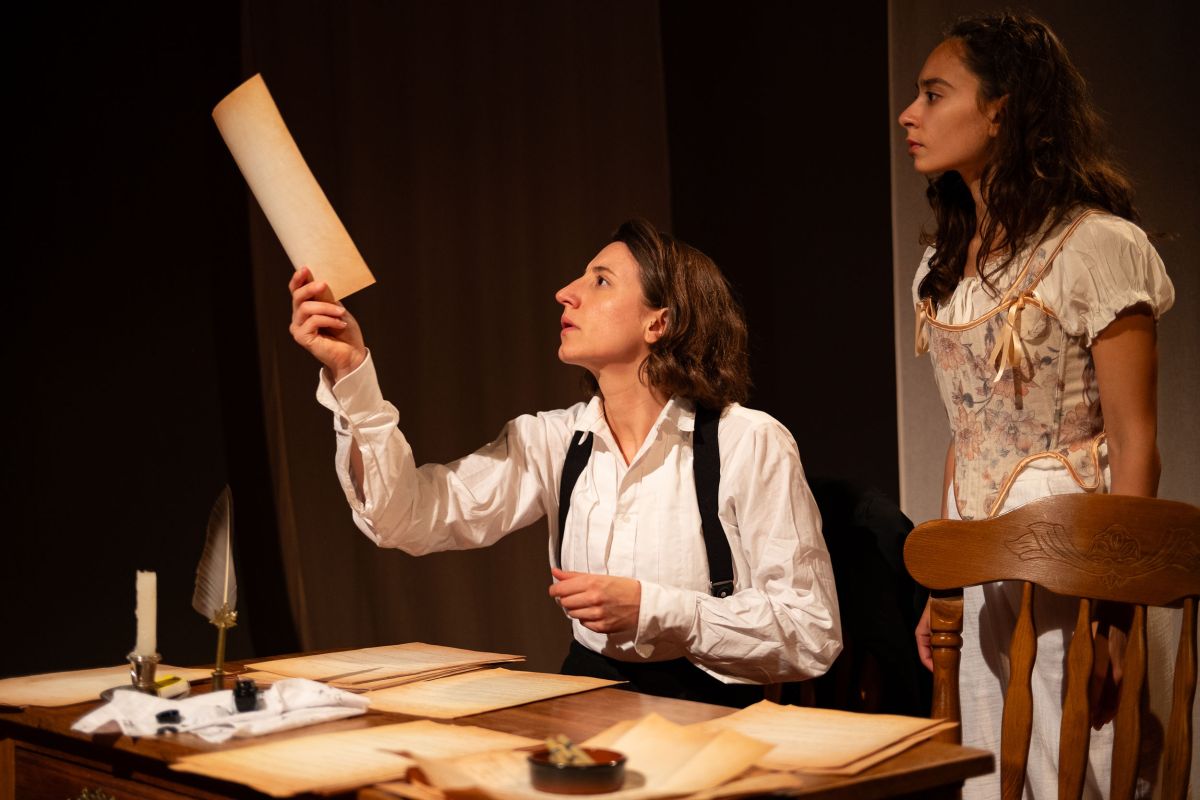An intriguing background score engulfed the theatre, it excited me because I don’t think they had it the first time I watched the play. And there they were, Léa des Garets as George Sand, Iniki Mariano as Marie Dorval and Conor Dumbrell as all of the male characters back to steal my presence for the next 95 mins, I delightfully surrendered.