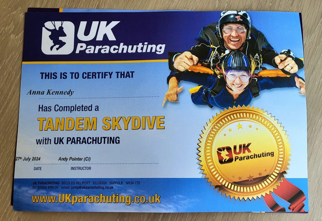 To be honest it was the last thing on my bucket list. We were brainstorming ways to raise funds for my charity Anna Kennedy online. One of our Patrons Steven Smith mentioned he had sky jumped out of a plane to raise funds for Pancreatic Cancer charity a few years back.