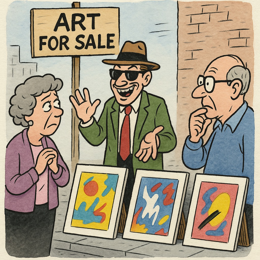 Art is subjective, and let’s not forget where the term con artist comes from. A brilliant salesman can sell snow to an Eskimo. It’s the same with paintings. Remember ART, the award-winning play? Serge, indulging his taste for modern art, buys an expensive, completely white painting. Marc is horrified. Their friendship unravels over what constitutes “art,” while Yvan tries to play peacemaker. Art, ultimately, is what you decide it is.