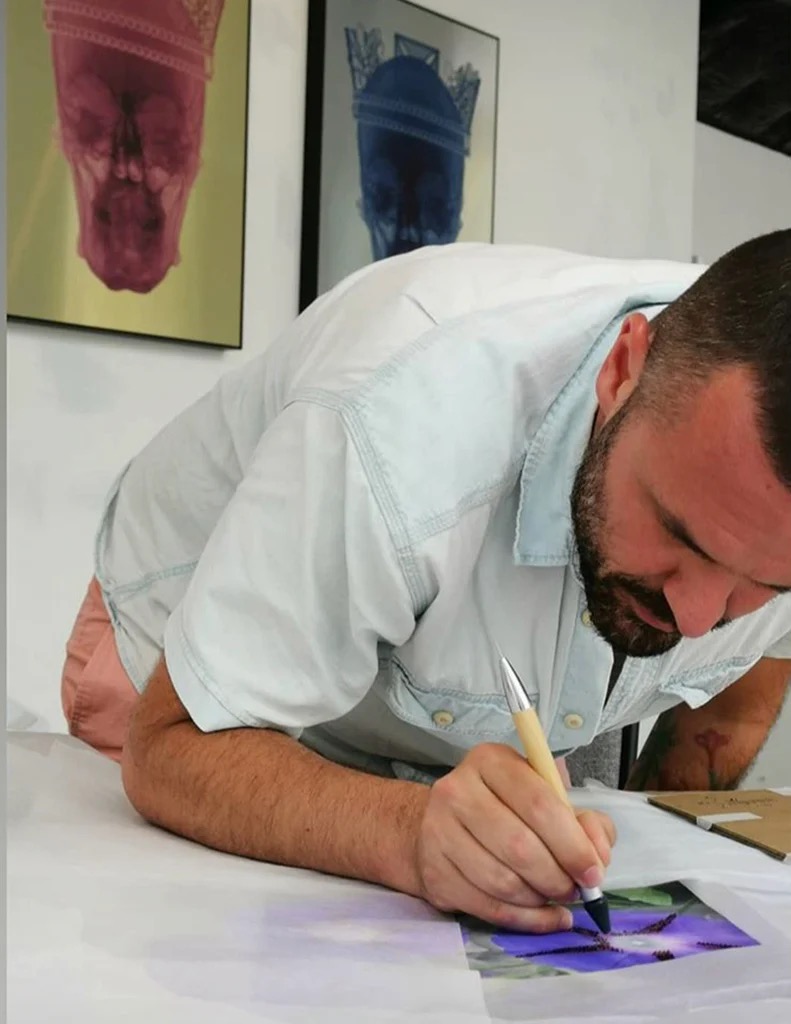 At the heart of Romano’s work is an extraordinary and deeply personal source material: his own medical records. X-rays, MRIs and internal scans of his body are transformed into striking, often playful artworks that quietly ask some of life’s biggest questions. “I am progressively dissecting myself,” he says with a smile. By stripping the body of its external markers—fashion, status, wealth and adornment—Romano reveals a powerful truth: beneath it all, we are equal. Bones, organs and neural structures carry no hierarchy. Jewels mean nothing here.