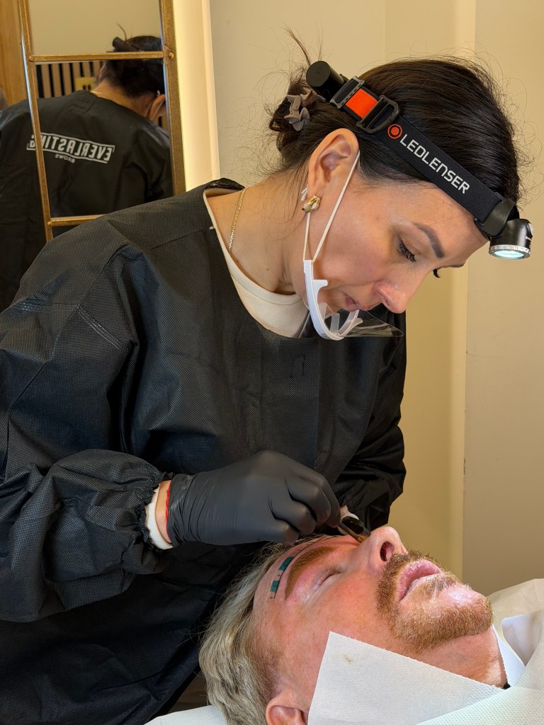 At the mention of microblading, I’ll be honest — alarm bells rang. Images flashed through my mind of overly dark, overly sharp brows I’d seen on some men, better suited to drag performance than everyday life. No offence intended — just not my look.