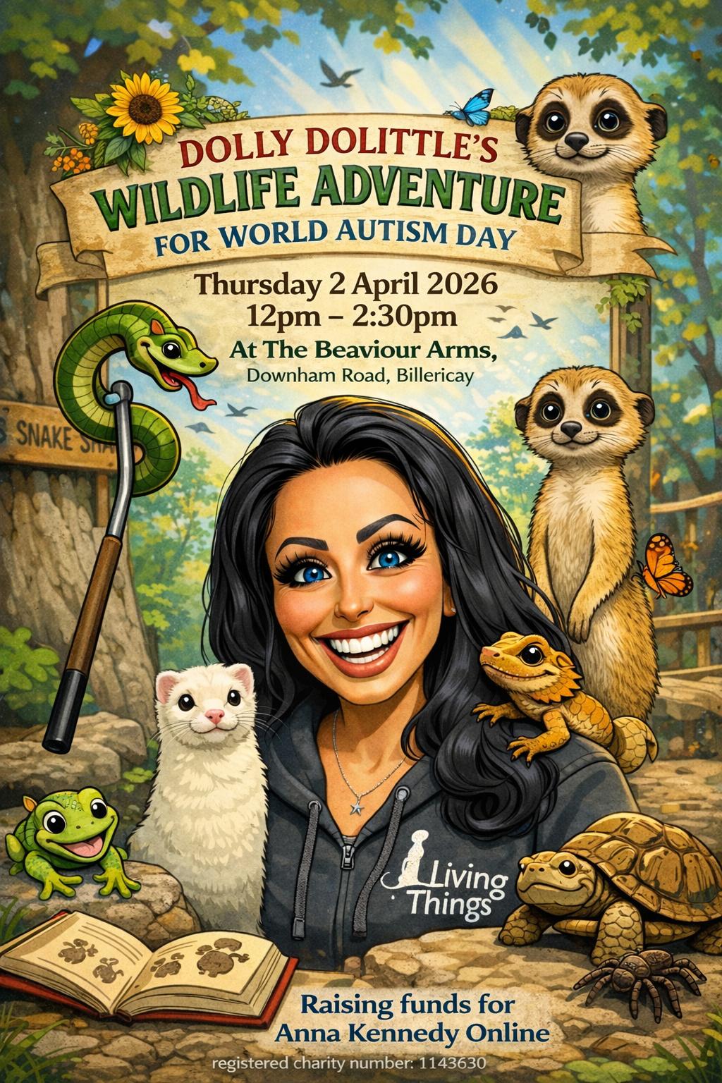 Dolly Dolittle’s Wildlife Adventure is coming to Billericay this April in celebration of World Autism Awareness Day, bringing together acclaimed Animal Wildlife Presenter Nicki Rodriguez at Living Things in support of Anna Kennedy Online.