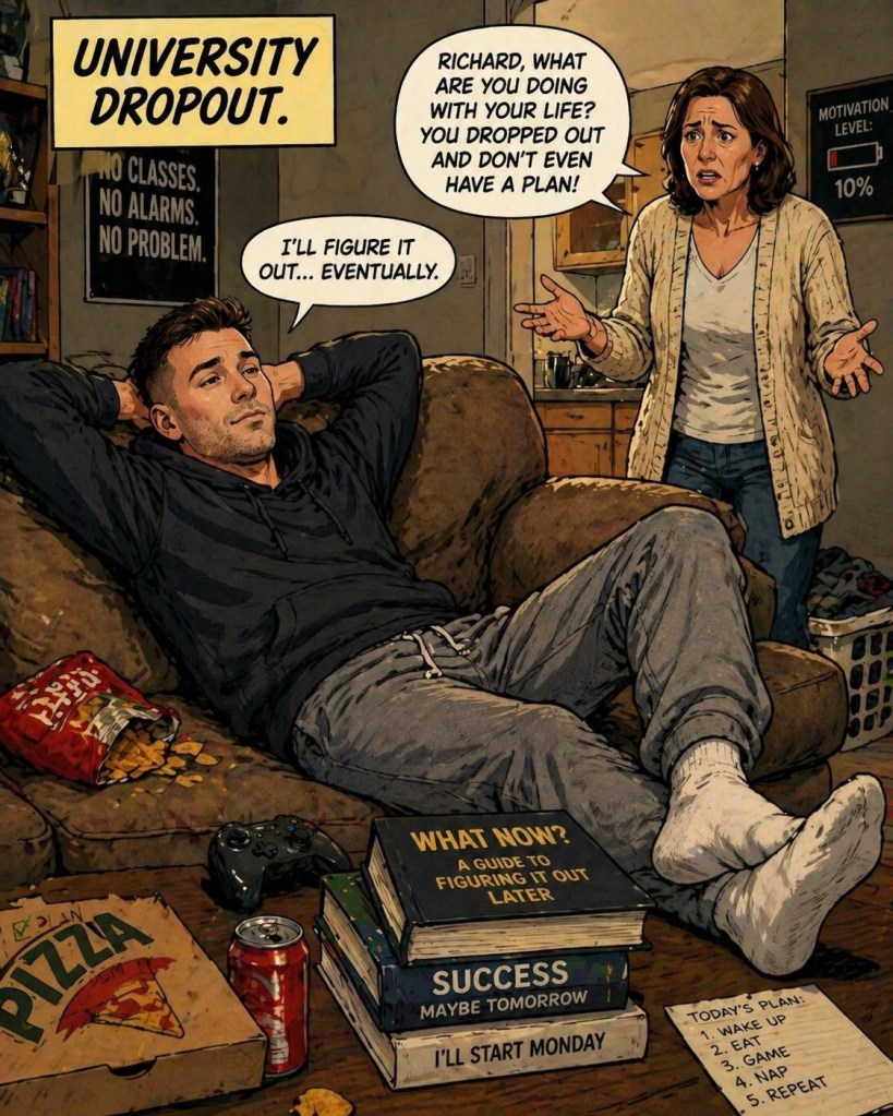 This is a difficult situation and one that requires a careful balance. My biggest concern is that if your son doesn’t use this time constructively, he may struggle to return to university at all. A year without structure can easily lead to a loss of motivation, and that could have long-term consequences for his education and future prospects. Rather than issuing ultimatums, I would encourage you to focus on guiding him towards making better use of his time. Whether that means finding a job, doing some study to stay in the academic mindset, or developing new skills, the goal is to keep him engaged. Asking him to contribute financially to the household is not unreasonable and can help instil a sense of responsibility. However, telling him to leave could create more problems than it solves and may be something you later regret. Encouragement and support, combined with clear expectations, are likely to be far more effective.