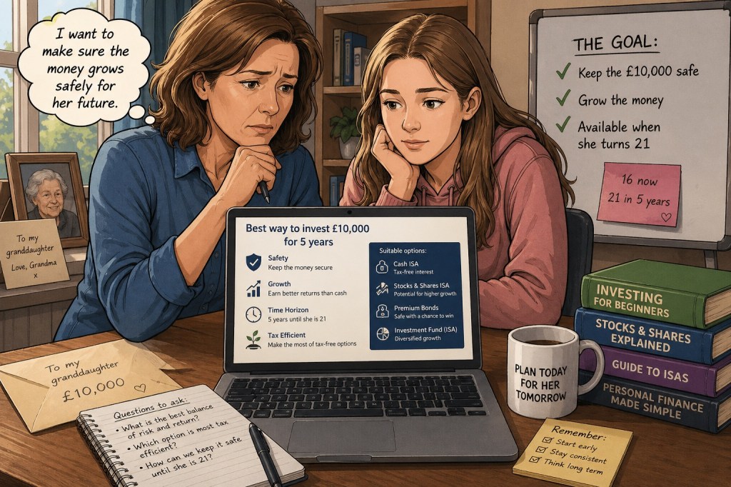 Dear Richard, my daughter has been left £10,000 by her grandmother, with the condition that it is saved until she is 21. She’s currently 16. What is the best way to invest this money?