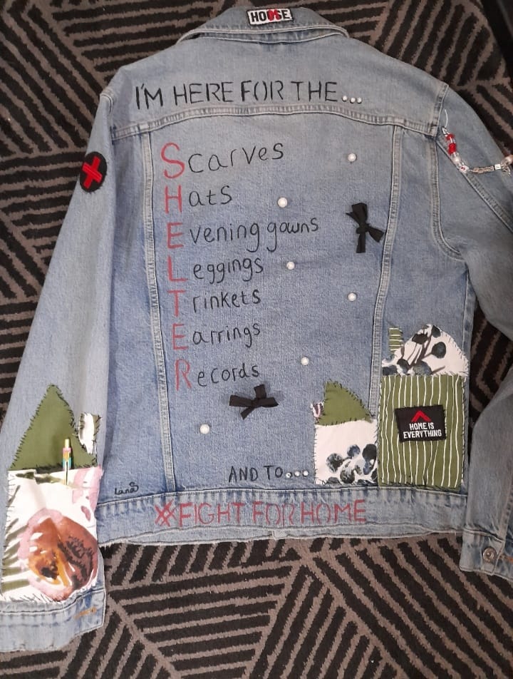 Lana, who lives with autism, once feared unfamiliar environments. In 2024, she began volunteering at Shelter Crystal Palace, where her uniqueness was embraced and her creativity blossomed. She now designs themed window displays and, to celebrate her one-year anniversary, created a striking punk-style denim jacket.